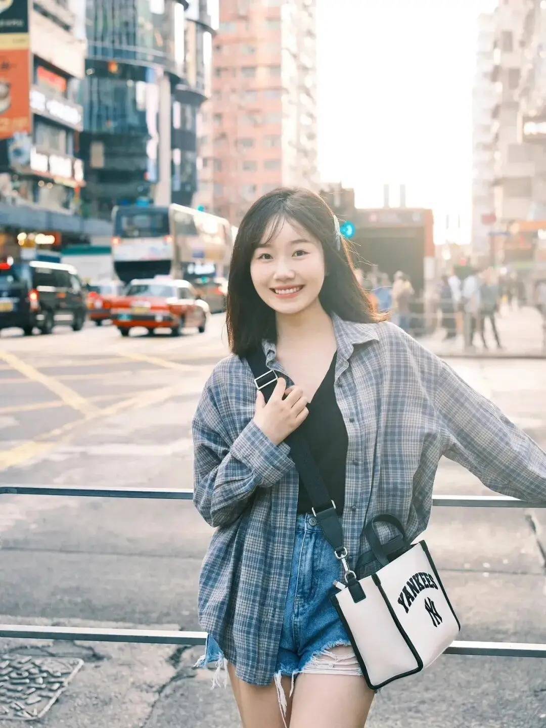 人物在都市街头,一手轻扶包带,一手自然搭在栏杆,姿态随性又有松弛感。这种姿势巧妙融入了车水马龙的街景,休闲穿搭与都市建筑相得益彰,既凸显出人物的自在气质,又借街头的烟火气烘托出时尚感,轻松拍出吸睛的城市打卡大片,这波街头拍照的氛围感绝了~