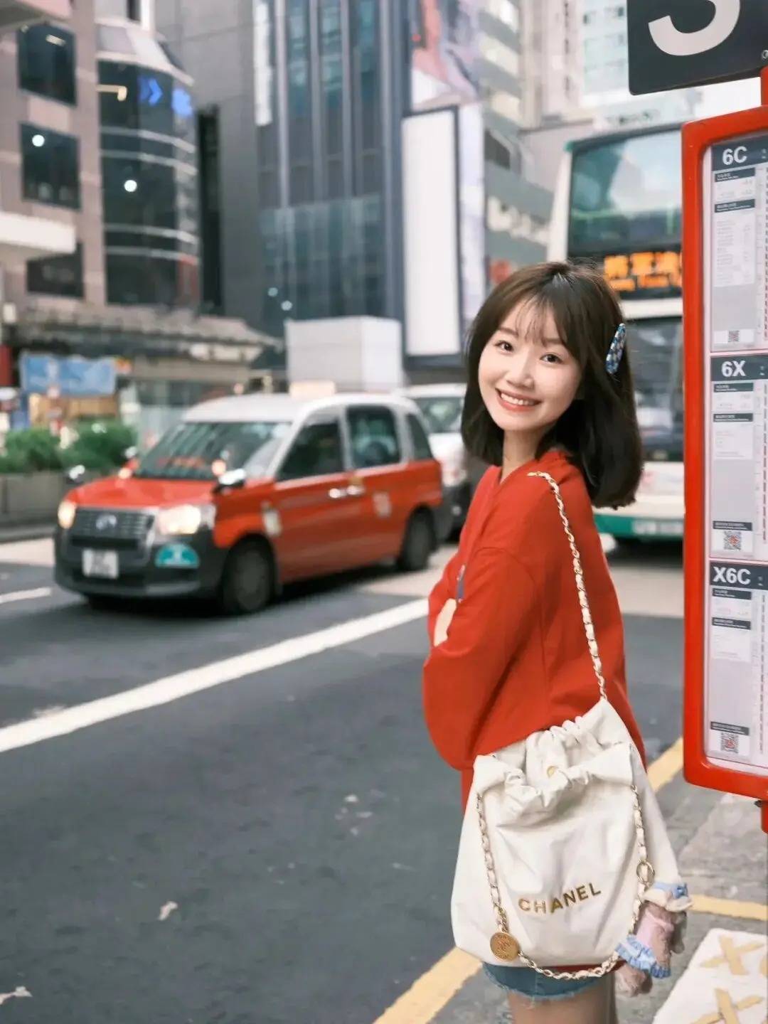 人物在都市街头,侧身站立,双臂交叉,姿态随性又有都市感。这种姿势巧妙融入了车水马龙的街景,红色穿搭在灰调建筑中格外亮眼,既凸显出人物的活力气质,又借城市背景烘托出时尚感,轻松拍出吸睛的街头打卡大片,这波都市街拍的氛围感绝了~